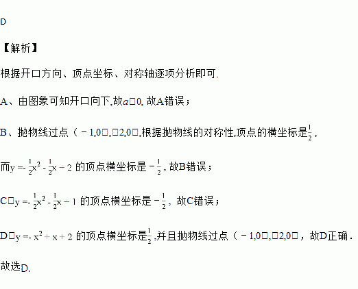 A. y=x2﹣x﹣2 B. y=﹣x2﹣x+2 C. y=﹣x2﹣x+1 D. y=﹣x2+x+2