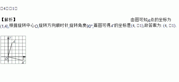如图,在平面直角坐标系中,点A的坐标为(1,4),将线段OA绕点O顺时针旋转90°得到线段OA′,则点A′的坐标是______.