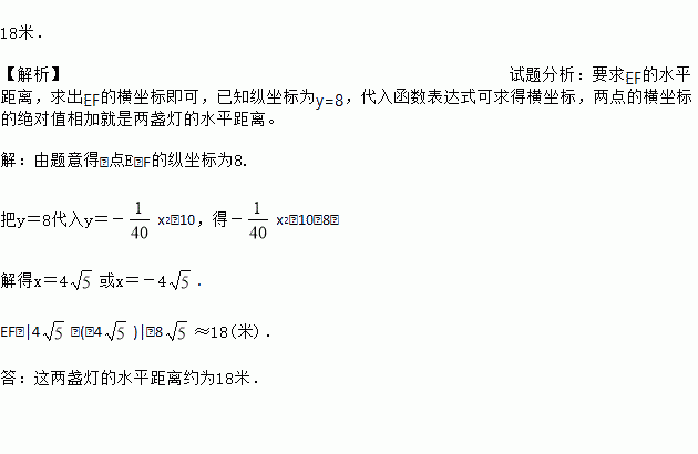x2+10,为保护廊桥的安全,在该抛物线上距水面AB高为8米的点E,F处要安装两盏警示灯,求这两盏灯的水平距离.(