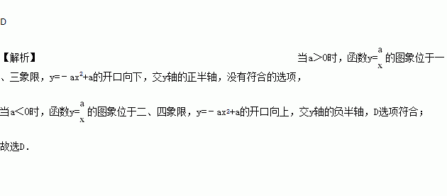a≠0,函数y=与y=﹣ax2+a在同一直角坐标系中的大致图象可能是( )