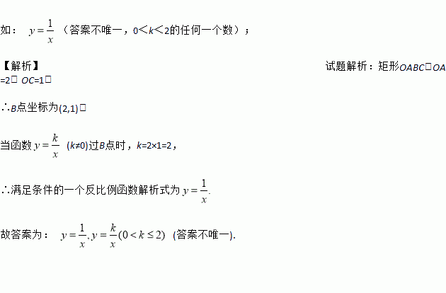 如图,在平面直角坐标系xoy中,矩形OABC,OA=2, OC=1, 写出一个函数,使它的图象与矩形OABC的边有两个公共点,这个函数的表达式可以为__(答案不唯一).