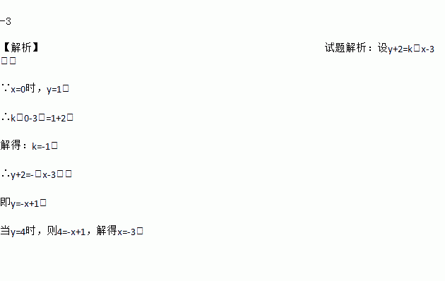 已知y+2与x-3成正比例,且当x=0时,y=1,则当y=4时,x的值为________.