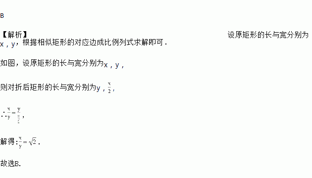 把一张矩形纸片对折后得到的半张矩形纸片与原来的整张矩形纸片相似,则原矩形的长与宽的比值为( )