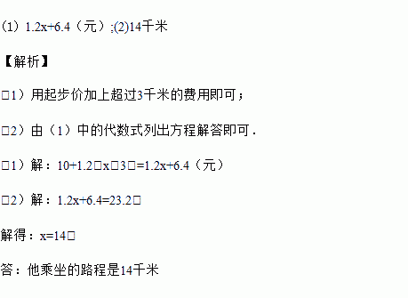 (2)若他支付的费用是23.2元,你能算出他乘坐的路程吗?