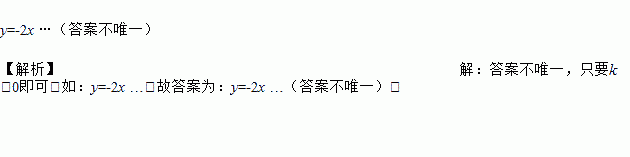 y=-2x …(答案不唯一) 【解析】【解析】 答案不唯一,只要k<0即可.如:y=-2x ….故答案为:y=-2x …(答案不唯一).