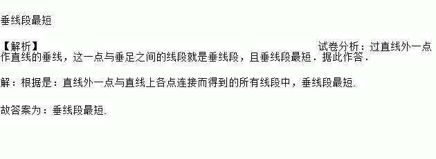 自来水公司为某小区A改造供水系统,如图沿路线AO铺设管道和BO主管道衔接(AO⊥BO),路线最短,工程造价最低,根据是_____.