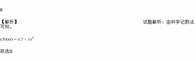 A. 6.7×104 B. 6.7×105 C. 6.7×106 D. 67×104