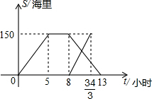 ·ÖÎö£º£¨1£©ÓÉͼÏó¿ÉµÃ³öÓæ´¬Àë¸Û¿ÚµÄ¾àÀësºÍËüÀ뿪¸Û¿ÚµÄʱ¼ätµÄº¯Êý¹ØÏµÊ½£¬·ÖΪÈý¶ÎÇóº¯Êý¹ØÏµÊ½£»