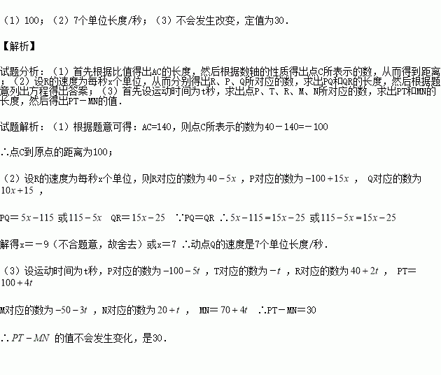 (3)如图3,在(1)的条件下,O表示原点,动点P、T分别从C、O两点同时出发向左运动,同时动点R从点A出发向右运动,点P、T、R的速度分别为5个单位长度/秒、1个单位长度/秒、2个单位长度/秒,在运动过程中,如果点M为线段PT的中点,点N为线段OR的中点.请问