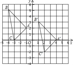 (3)△A′B′C′的面积=3×5-$\frac{1}{2}$×1×5-$\frac{1}{2}$×2×2-$\frac{1}{2}$×3×3=15-$\frac{5}{2}$-2-$\frac{9}{2}$=15-9=6.