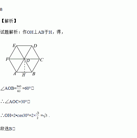 已知正六边形的边长为2,则它的内切圆的半径为( )