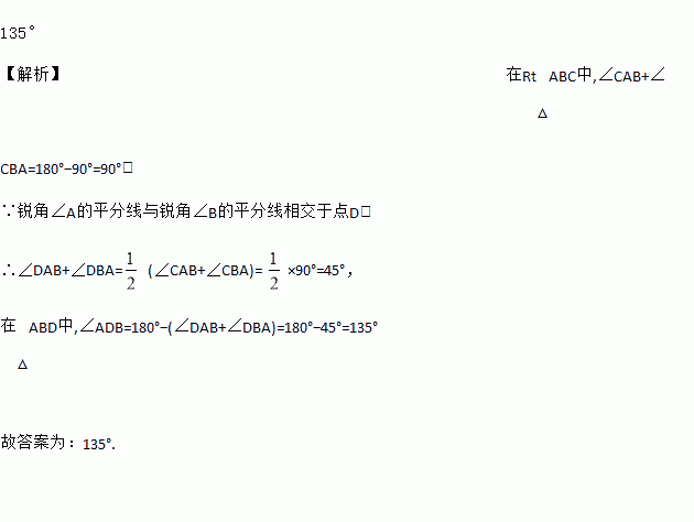 在Rt△ABC中,锐角∠A的平分线与锐角∠B的平分线相交于点D,则∠ADB=______.