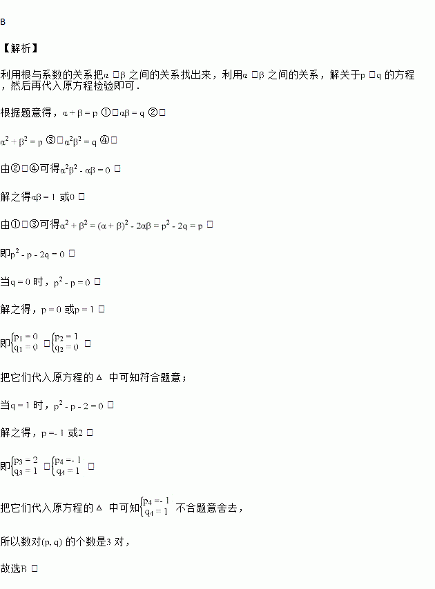 设的两实根为,,而以,为根的一元二次方程仍是,则数对的个数是( )