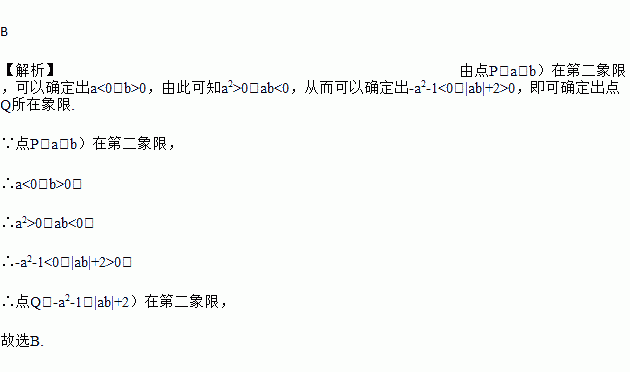 若点P(a,b)在第二象限,则Q(-a2-1,|ab|+2)在第( )象限