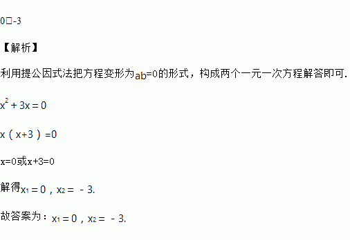 一元二次方程x2+3x=0的解是_____.