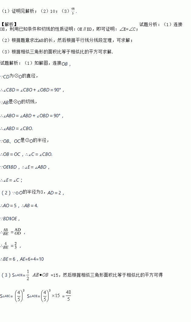 (2)若⊙O的半径为3,AD=2,试求AE的长;