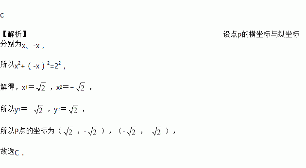 已知平面内有一点P,它的横坐标与纵坐标互为相反数,且与原点的距离是2,则P点的坐标为( )
