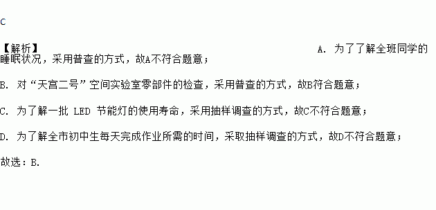 C. 为了解一批 LED 节能灯的使用寿命,采用抽样调查的方式
