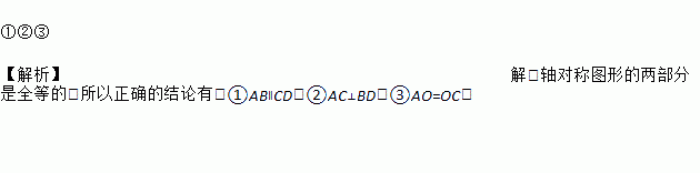 是四边形ABCD的对称轴,若AB﹦CD,有下面的结论:①AB∥CD;②AC⊥BD;③AO﹦OC;④AB⊥BC,其中正确的结论有___________________________(只填序号即可)