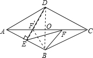 分析:首先连接DB,DE,设DE交AC于F′,连接MB,DF.证明只有点F运动到点M时,EF+BF取最小值,再根据菱形的性质、勾股定理求得最小值.