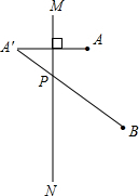 分析:作出A点关于MN的对称点A′,再连接A′B,与MN交于一点,就是P点所在位置.