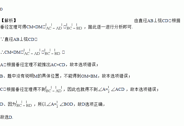A. AC=CD B. OM=BM C. ∠A=∠ACD D. ∠A=∠BOD