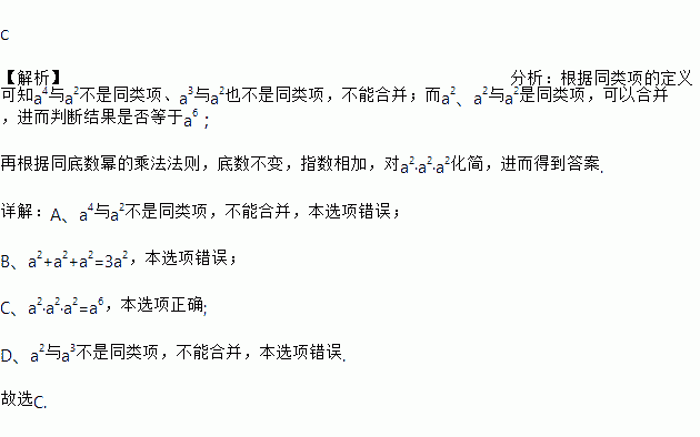 A. a4+a2 B. a2+a2+a2 C. a2·a2·a2 D. a3·a2