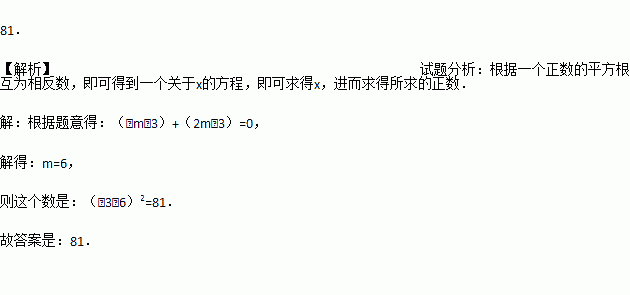 一个正数的平方根为-m-3和2m-3,则这个数为_________.