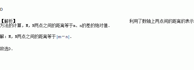 在数轴上,两点M,N分别表示数m,n,那么M,N两点之间的距离等于( )