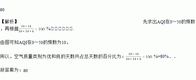 空气质量指数,简称AQI,如果AQI在0~50空气质量类别为优,在51~100空气质量类别为良,在101~150空气质量类别为轻度污染,按照某市最近一段时间的AQI画出的频数分布直方图如图所示.已知每天的AQI都是整数,那么空气质量类别为优和良的天数共占总天数的百分比为______%.