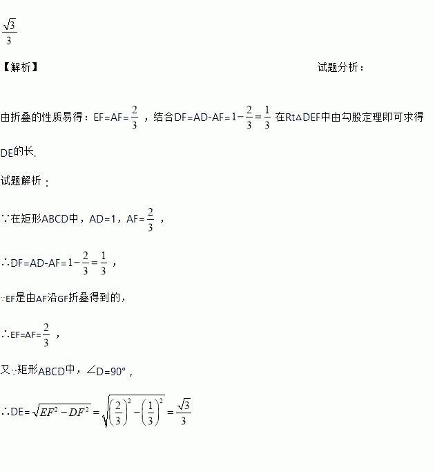 已知矩形纸片ABCD,AB=2,AD=1,将纸片折叠,使顶点A与边CD上的点E重合.如果折痕FG分别与AD,AB交于点F,G(如图),AF=,求DE的长.
