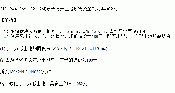 (2)如果绿化该长方形土地每平方米的造价为180元,那么绿化该长方形土地所需资金约为多少元?