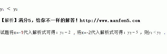 已知A(﹣1,y1)、B(﹣2,y2)都在抛物线y=x2+1上,试比较y1与y2的大小:y1_____y2.