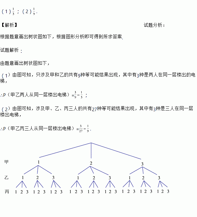 (1)求甲、乙两人从同一层楼出电梯的概率;