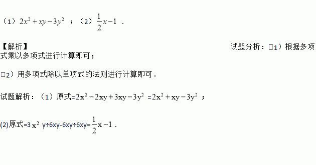 计算(1)(2x+3y)(x-y) (2)(3y - 6xy)÷6xy