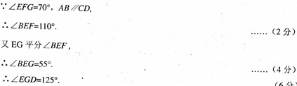 如图,AB∥CD,直线EF分别交AB、CD于点E、F,EG平分∠BEF,若∠EFG= 70º,求∠EGD的度数.