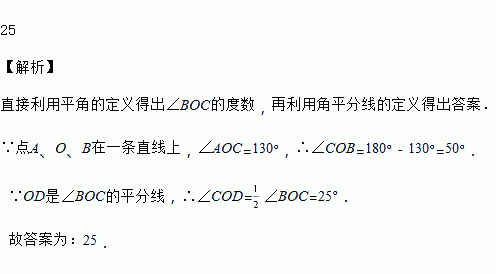 如图,点A、O、B在一条直线上,∠AOC=130°,OD是∠BOC的平分线,则∠COD=______°