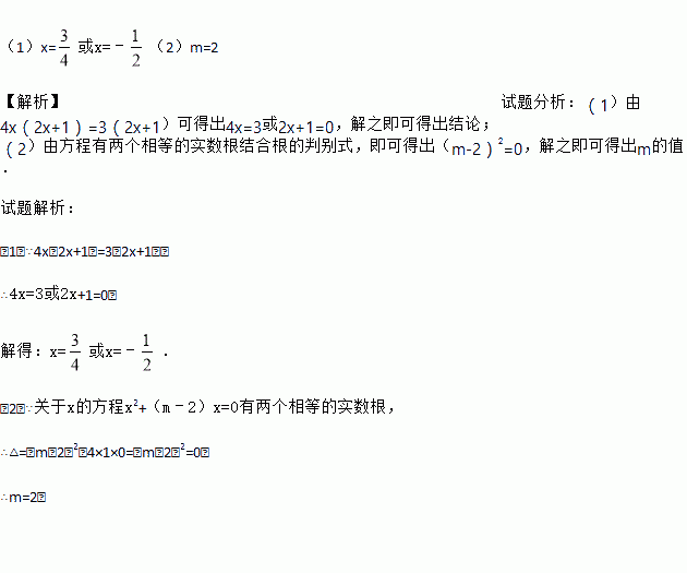 (2)关于x的方程x2+(m﹣2)x=0有两个相等的实数根,求m的值.