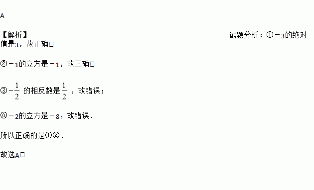的相反数是-2;④-2的立方是-4.其中正确的是( )