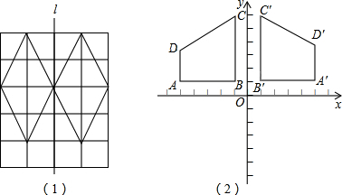(1)在图(1)网格纸上,画出所给图形关于直线l对称的图形;