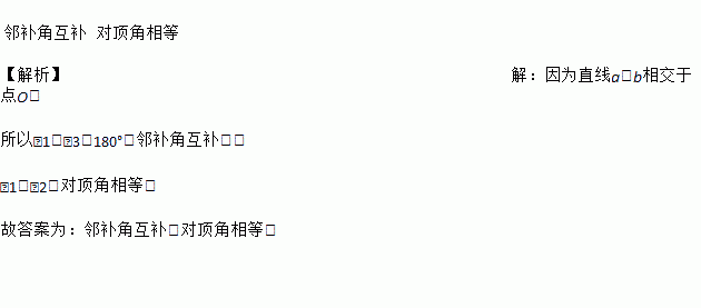 如图,因为直线a,b相交于点O,