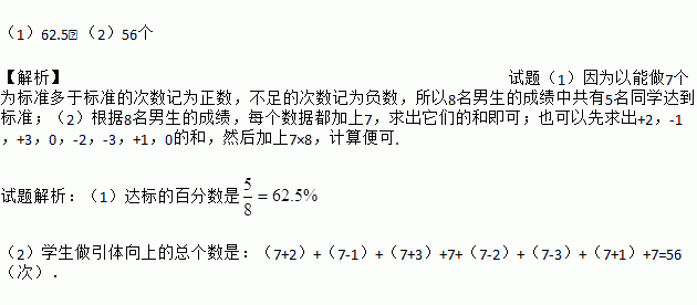 数记为正数,不足的次数记为负数,其中8名男生的成绩为+2,-1,+3,0,-2,-3,+1,0.