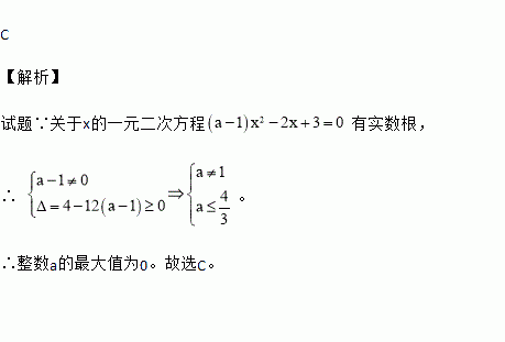 关于x的一元二次方程有实数根,则整数a的最大值是