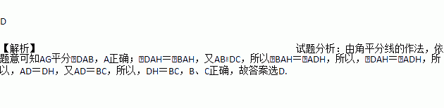 A. AG平分∠DAB B. AD=DH C. DH=BC D. CH=DH