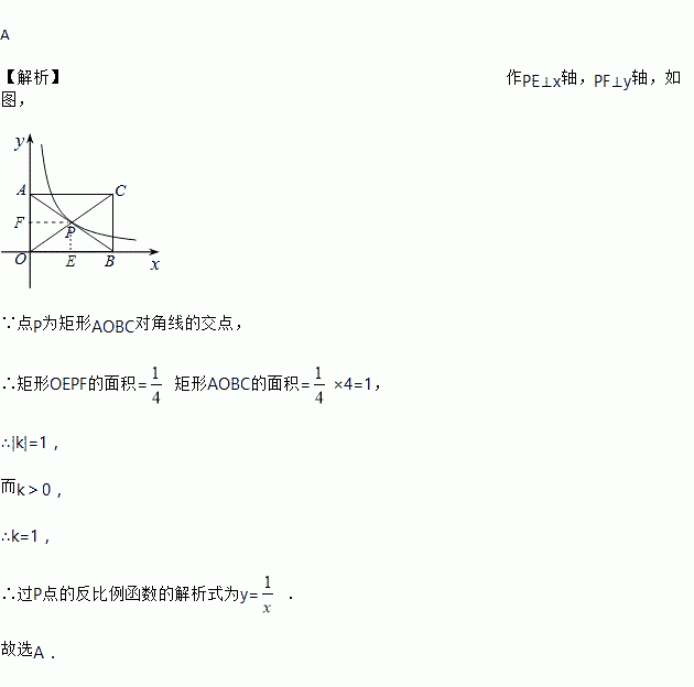 如图,矩形AOBC的面积为4,反比例函数y=的图象的一支经过矩形对角线的交点P,则该反比例函数的表达式是( )