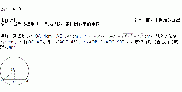 若圆的半径是4cm,一条弦长是,则圆心到该弦的距离是_____,该弦所对的圆心角的度数为_____.