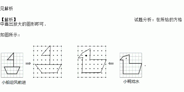 请你画一画,试着把下面的两个图形利用给出的格点放大