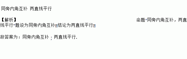 命题“同旁内角互补,两直线平行”题设为_____________,结论为__________.