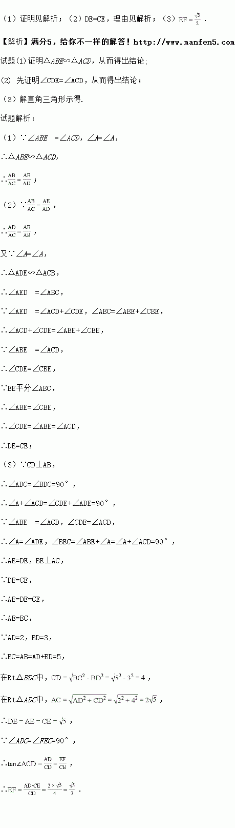 (3)若CD⊥AB,AD=2,BD=3,求线段EF的长.