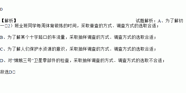 D. 对“嫦娥三号”卫星零部件的检查,采取抽样调查的方式